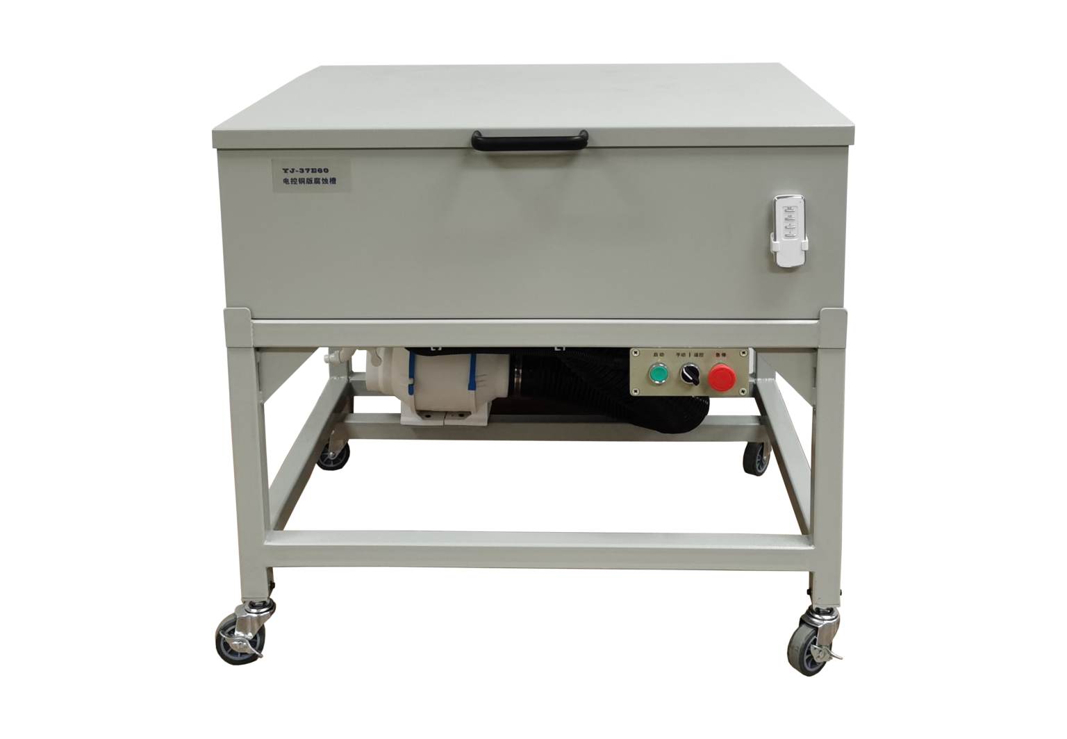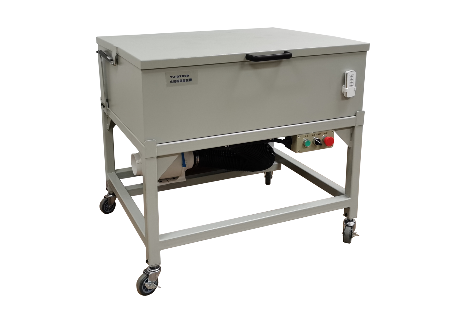 用于銅版畫制版腐蝕處理。內置防腐材質腐蝕槽,負壓全封閉式結構,外置腐蝕液排放開關,強風靜音防水風機與外接風管連接對腐蝕液氣進行處理, 無線遙控控制。