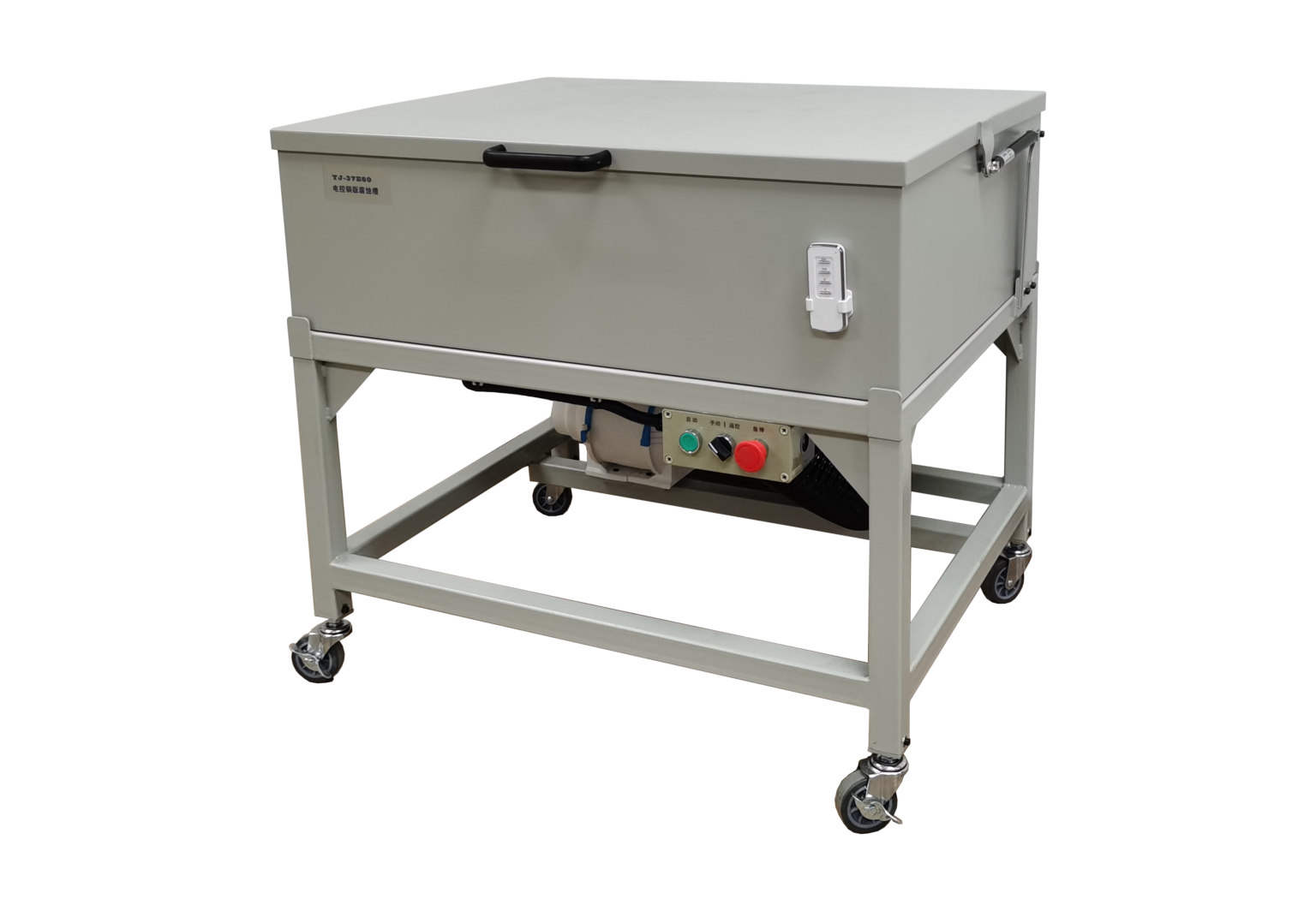 用于銅版畫飛塵技法制版。 全密閉操作箱,高效風機吹起松香粉內部循環;抽屜式置版臺,方便取放。 高承載福馬腳輪,輕松調節水平和移動、固定。 臺面尺寸: 1300×950mm 機器用電:220V 380W 機器重量:210kg 外形尺寸:1600×1100×2400mm |